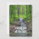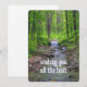 Postcard featuring a photo of a forest landscape. Get lost in the enchanting woods with a myriad of trees that look so alive you can almost hear their whispering leaves. In the midst of the emerald wilderness, a crystal-clear stream meanders in the heart of tranquillity. Use this postcard to share your messages and remind your recipient to "enjoy your special day" in the most beautiful way.