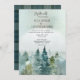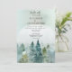 Forest Wonder Rustic Pine Wedding Invitation celebrates the wonder of nature even far before the wedding begins. Watercolor trees in shades of hunter green and golden green are accented by misty blue mountains in the distance. Billowing clouds and mist in the background complete the scene, you just want to be there now.