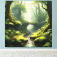 A serene, sunlit forest scene unfolds with towering trees draped in lush greenery. A winding stream, sparkling with sunlight, flows through the heart of the forest. A rustic, moss-covered bridge arches over the stream, inviting exploration. Ferns and other vibrant foliage line the banks, creating a sense of tranquility and natural beauty. The overall atmosphere is one of peace and harmony, offering a glimpse into a hidden, enchanted world.