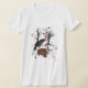 I love wearing a reprint of my colored pencil drawing of Annie the cat looking over the hillside. My illustration is based on a picture I took of Annie the manx cat. The printing turned out lovely, and the shirt is soft and thick. The American Apparel shirt run on the smaller size, so I always order a large or extra large.
