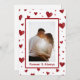 "Celebrate your love this Valentine’s Day with a beautifully customizable photo card! Simply add your favorite photo of you and your special someone, and let the card do the rest. The design features a charming background filled with tiny red hearts, giving it a romantic and heartfelt touch.