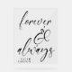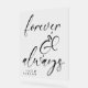 Add a timeless touch to your special day with this "Forever and Always" personalized wedding sign. Featuring elegant typography and space to customize with your names, this sign makes a beautiful addition to your ceremony entrance, reception décor, or sweetheart table backdrop.