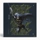 Check out this illustration of Batman swinging from his grappling hook, with his name in electric font behind him.