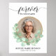 Modern memorial funeral poster features the wording 'Forever in our Hearts', your loved one's photo surrounded by a eucalyptus wreath, their name, and their birth/death dates. MATCHING items in our collection.