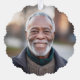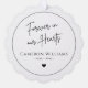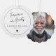 Ornament card featuring the text "Forever in our hearts" in an elegant, handwritten style font; customizable name and year, and a custom color heart. On the back is a photo template.