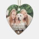 Keep your furry family member close to your heart with this beautiful heart-shaped holiday keepsake ornament. Designed to honor the memory of a beloved dog, cat, or other pet. Features a photo with custom white 'Forever in Our Hearts' script overlay with name and lifespan wording and paw print detail.
