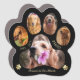 Remember your beloved pet with this five-photo paw memorial keepsake design with message "Forever in Our Hearts", your pet's photos and name with his or her birth and death years. Shown here in black with gold tone text and accents. Design by Holiday Hearts Designs (rights reserved) with template placeholder photos via Unsplash.