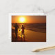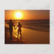 Silhouette of a loving newlywed couple on their honeymoon walking along the beach into the sunset, the rest of their lives. Matching cards, postcards, and postage stamps in three sizes available.