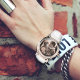 This beautiful watch has a pink gold face / frame and white band. Add your special photo and personalize with handwritten, script text along the bottom. Sample wording is, "Our love is forever", or change it. This feminine watch makes a lovely gift for a wife or girlfriend. Your photo will have a pinkish tinge because of the filter chosen. To change that, use the design tool. Choose the photo, on the design tool page, and then "filters". Change it to no filter. This is one of many wristwatch styles. The design is easy to swap to any other style.