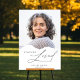 The clean white background and elegant script font highlight your loved one’s photo, creating a simple yet deeply touching tribute.