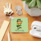 Cute forever lucky green gnome holding a clover and golden confetti on lime green background. Text can be personalized. Monogram on the back side. A good souvenir for everyone! Make someone happy!