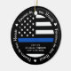 Forever In Our Hearts ! Honor your beloved police officer and with this Thin Blue Line Police Memorial ornament in an American flag black and blue design in police flag colors. Personalize with your police officer's name, and EOW date. This thin blue line police memorial ornament will be a treasured keepsake to honor a fallen police officer or law enforcement officer. Perfect for police departments to honor a fallen officer. COPYRIGHT © 2020 Judy Burrows, Black Dog Art - All Rights Reserved. Forever Our Hearts Thin Blue Line Police Memorial Ceramic Ornament