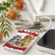 Design features red and black paw prints on a white background and two red scrolls. The top scroll is for your dog or cats name and the bottom scroll will print with the words "Forever Remembered". Upload your photo into the space on the front and change the verse on the back to say anything you'd like. In this sample I used "The pets we love don't go away. They walk besides us everyday.