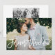 A customizable photo thank you postcard featuring white hand lettered script overlay with watercolor leaves pattern. This thank you card will be perfect for wedding, graduations, and other events.