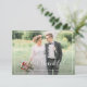 A lovely wedding photo card with a wonderful image of the newly weds and white calligraphy script. The bride and groom's image and back color and text can be personalized. Add a personal thank you message and you can upload your own wedding photo.