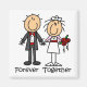 A stick figure bride and groom and text that reads "Forever Together" on wedding T-shirts, mugs, cards, stickers, tote bags, magnets, postage stamps, mousepads, hoodies, and other bride and groom apparel and gifts, perfect for the newlyweds to wear on their honeymoon and the weeks following the big day!