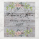 This wedding pattern features delicate floral borders on a rustic country barnboard background. The romantic design in perfect for a spring or summer wedding, and the subtle use of flowers adds a touch of elegance to the overall look.