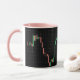 Forex candlestick chart with fractal indicator. Symbols of the Forex market. Stock exchange chart of the dollar, pink green black colors. Perfect elegant gift for a female trader. A beautiful addition to the interior of a business man.
