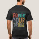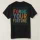 The t-shirt boasts the inspirational message "Forge Your Fortune" in a dynamic multicolor design. Each word could be a different vibrant hue, or the letters themselves could be a kaleidoscope of colors, creating a bold and motivational statement.