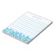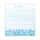 Stylish lined notepad with little blue forget me not flowers at the bottom of the page, personalized with your name. Pretty gift for garden and nature lovers.
