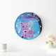 Forget Me Not Cute Elephant Cat Cherry Blossom Art Large Clock