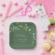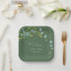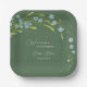 Wedding Welcome Paper Plates with an elegant bouquet of soft blue forget-me-not flowers with light green leaves and curved stems, spring or summer natural pastel colors, a romantic light bouquet of wildflowers. Botanical digital watercolor. Cute flower botany Wedding Welcome Paper Plates. Forget-Me-Not Collection.