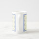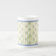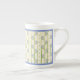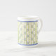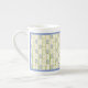 This delightful fine bone china mug features Leslie Sigal Javorek's original digital painting of sweet, dainty perwinkle blue forget-me-not flowers with spring green stripes and polka dots on a warm ivory are perfect for settling down w/a nice cup of tea.