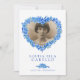 Double-sided blue forget-me-not flowers floral celebration of life funeral memorial invitation. Blue and white with a heart for your photo on the front. Replace the sample text and two photo holders with your own special photos and event information details. Other matching items are and colors are available. Original hand-inked and watercolor washed art, forget-me-nots in a flower heart wreath design by Sarah Trett for www.mylittleeden.com