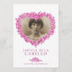 Order of service double-sided pink and white floral funeral program. Elegant art program, replace sample text and photo holders with your own special photo and information details. Other matching items are available. Original hand-inked and watercolor washed art, forget-me-nots in a flower heart wreath design by Sarah Trett for www.mylittleeden.com