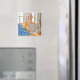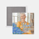 Remember your mother with this fridge magnet so you can see her smiling face whenever you're in the kitchen. Add her photo inside a printed sketched frame in blue and white, with a cluster of forget-me-nots. Mom in a script. Forever loved; never forgotten beneath. And the years she lived.
