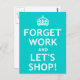 A humorous parody of the classic vintage Keep Calm and Carry On posters, especially for those who love shopping! Forget Work and Let's Shop!