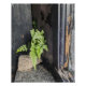 Amongst the peeling paint and rotting wood a young fern grows in the corner of the building.