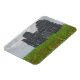 A 3D scene created in Vue, depicting the site of an ancient battle, with only the crumbling ruins of a medieval stone tower and red flowers in the grass to commemorate it. The falling rain and soft watercolor effect enhance the sadness of the hilltop scene.