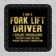 I am a fork lift driver I solve problems you don't know you have in ways you can't understand in distressed golden orange font.