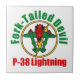 "The P-38 Lightning was known by the German Luftwaffe pilots as the ""Fork-Tailed Devil"" due to its unique design. Many of the fighter squadrons during WWII had their own unique insignia, often designed by the men in their squads. This design was used by the 49th Fighter Squadron in Foggia, Italy. It is a colorful cartoon of a P-38 with fork-tailed devil in green and P-38 Lightning in red.