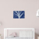 A photo of a tree with fanned out forked branches with a cyanotype effect.