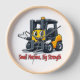 Cute forklift cartoon mascot wall clock with "Small Machine, Big Strength" quote. Perfect gift for forklift operators, warehouse workers & logistics lovers. Great home or office decoration!