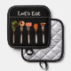 Forks on Black Let's Eat Oven Mitt and Pot Holders