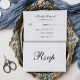 These elegant and modern wedding RSVP response cards feature a black and white with a classic layout and formal calligraphy. The back of the card is solid white with the word "Rsvp" in black calligraphy as a decorative element. This response card is perfect if you prefer to send a traditional, mail-in version to some or all of your guests.