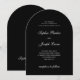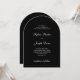 These sophisticated and modern black wedding invitations feature formal white script calligraphy and classic white text on a trendy arch shape. Your names and wedding date appear in calligraphy on the back as a decorative element. An updated contemporary spin on a traditional, elegant layout.