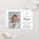 Perfect for a formal infant Catholic baptism, this black and white photo invitation offers a timeless and elegant design. Ideal for both baby boys and girls, it features a gender-neutral layout with a Christian cross. The invitation combines modern simplicity with handwriting calligraphy, making it a refined choice for any special baptism.