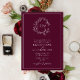 Formal Burgundy Leafy Crest Monogram Wedding Invitation