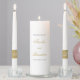 This elegant Formal Classic Black & Gold Monogram Wedding Unity Candle Set features a sleek white design with sophisticated black text and gold script for the couple’s names. It includes a central unity candle and matching taper candles wrapped with gold monogram accents, symbolizing the union of two lives with timeless style. Perfect for adding a personal and elegant touch to your wedding ceremony.