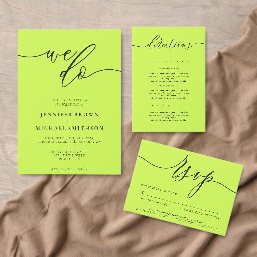 Formal Cyber Lime Jet Black Modern Wedding Tri-Fold Card