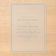 The Formal Dusty Blue Classic Script Wedding Acrylic Invitation embodies the essence of understated elegance with its delicate color palette and sophisticated design. The soft, tranquil shade of dusty blue evokes feelings of serenity and timeless charm, while the bold script font adds an air of refinement, making this invitation a perfect choice for couples looking to blend tradition with modern flair.