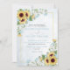 Formal Dusty Blue Sunflower Floral Script Wedding Invitation