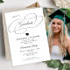 Stylish calligraphy script black and white senior high school, college or university graduate photo graduation party invitation template with a grad hat. ++++++++++++ Easy to personalize with your custom photo, the graduate's name, graduation year, school name, and graduation party details!
