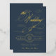 Formal Elegant Gold Calligraphy Navy Blue Wedding Foil Invitation
