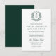 Formal Emerald Green Leafy Crest Monogram Wedding Invitation
