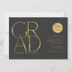 A bold, decorative font immediately catches your eye and sets the tone for this formal graduation invitation in trendy charcoal with faux gold foil accents. A striking pattern of switchback curves lends a modern Art Deco appearance to the reverse. A template allows you to easily customize the details of your event. Search ID905 to see other color options for this design.